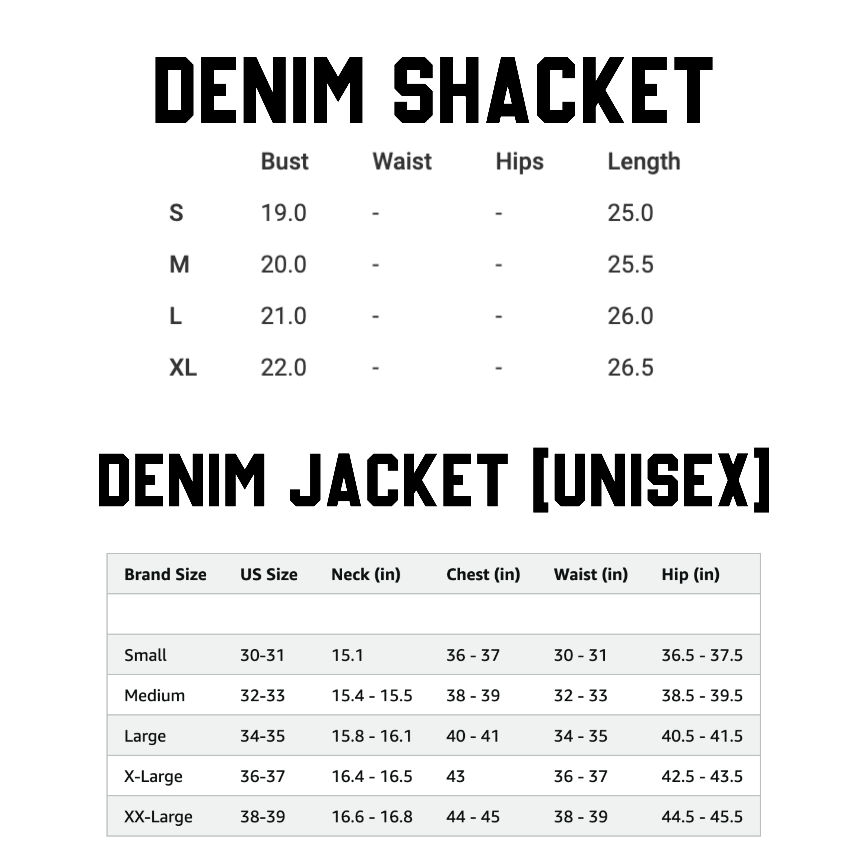 sizing is unisex. please reference images for more sizing information. option to upgrade to a Levi's unisex denim jacket.
